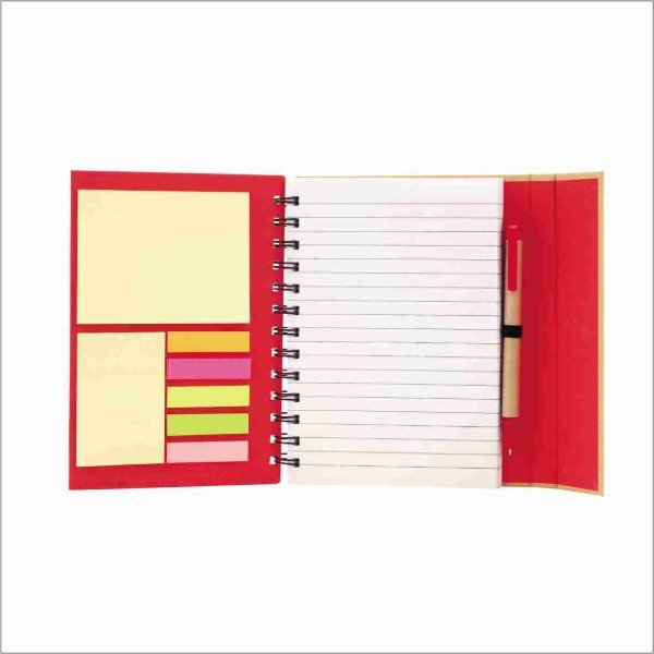 Dos autoadhesivos rectangulares (grande y mediano), cinco autoadhesivos señaladores de diferente color y bolígrafo. 70 hojas rayadas.